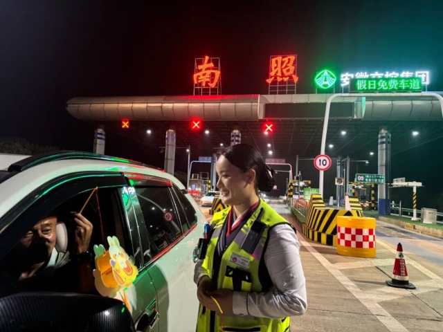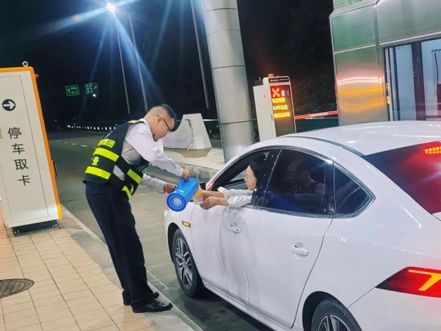 阜陽中心南照收費分中心員工為過往司乘送上小燈籠