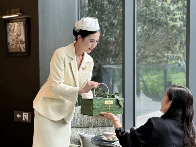 地產集團高速·壹品金鑰匙服務團隊客服人員為到訪客戶送上中秋禮物