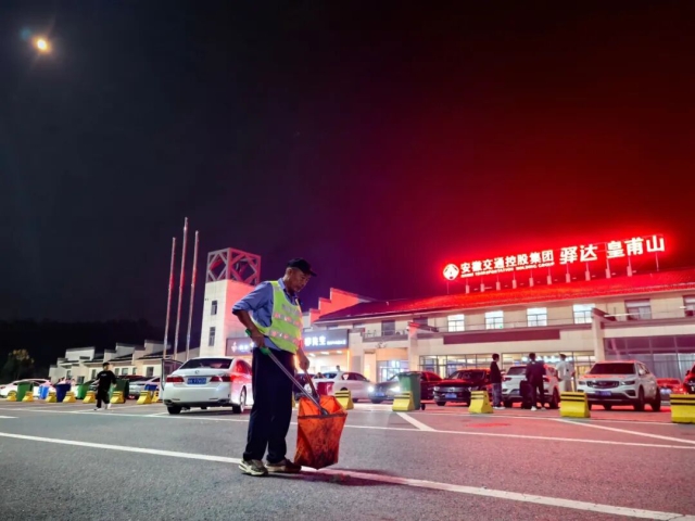 驛達集團皇甫山服務區(qū)疏導員清理廣場衛(wèi)生
