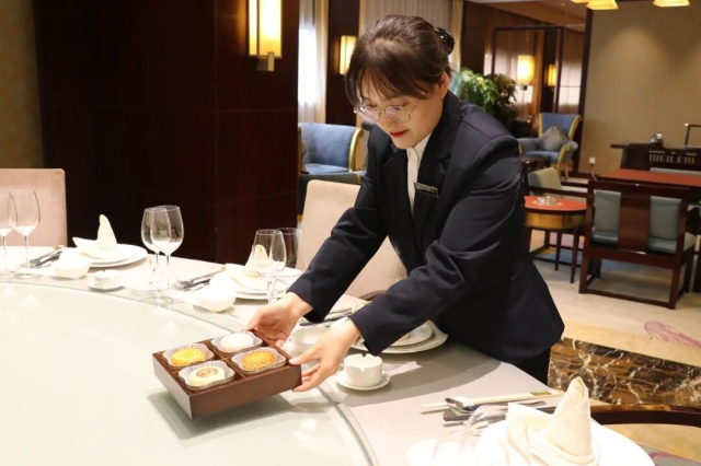酒店公司高速開元酒店餐飲部員工為客人備餐
