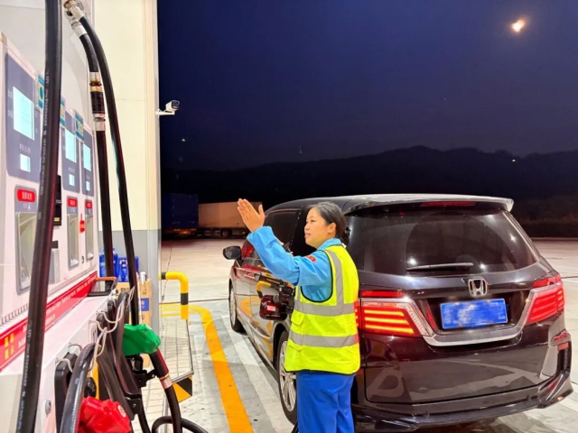交控石油公司溫泉服務區(qū)加油站員工為顧客加油